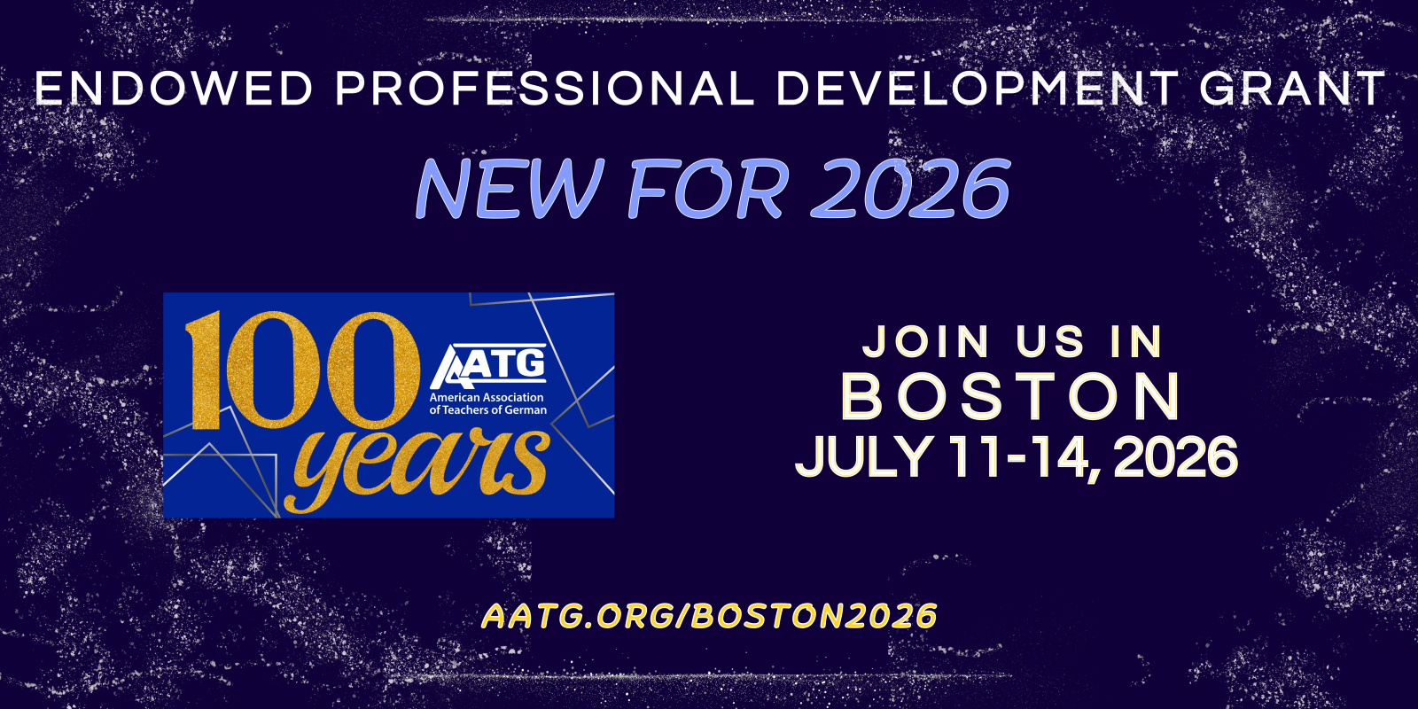 To celebrate 100 years of AATG in 2026, funding through the Endowed Professional Development Grant for 2026 will be reserved for current members attending the 2026 Conference AATG@100: Forging the Future in Boston, MA.